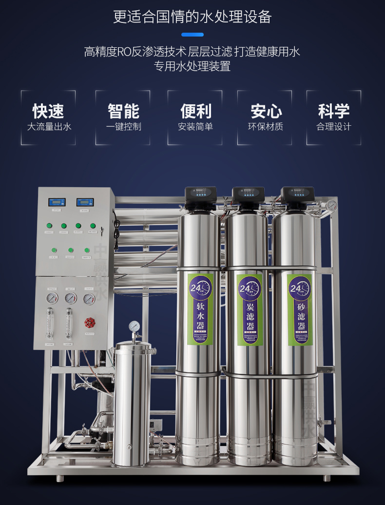 反滲透純凈水設備中設計了一種反滲透膜。膜兩側的壓力不同,通過(guò)兩側的壓力為動(dòng)力,壓迫原水通過(guò)反滲透膜,鹽的濃度低的會(huì )向濃度高的鹽方向滲透,能夠達到的平衡狀態(tài)下,就是液體的滲透壓。當含有的鹽水一側的壓力對于另一側的滲透壓力時(shí)候,就會(huì )發(fā)生反方向的流動(dòng),就產(chǎn)生了反滲透過(guò)程。反滲透純凈水設備都是采用了這種技術(shù),采用了自動(dòng)供水和斷水的智能化控制,這就是純凈水設備