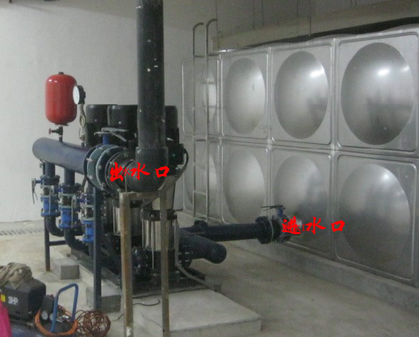 2、水箱出水-設備進(jìn)水:不銹鋼水箱或自建水池的出水法蘭對接恒壓變頻供水設備進(jìn)水法蘭。