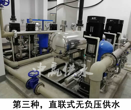 3、如果地下室沒(méi)有儲水池或不銹鋼水箱,而是直接通過(guò)中贏(yíng)無(wú)負壓供水設備疊加市政管網(wǎng)已有壓力進(jìn)行加壓的,由于它是與自來(lái)水管道是串聯(lián)的,密封性非常好,所以不會(huì )產(chǎn)生二次污染,大家可以放心使用(自來(lái)水--無(wú)負壓設備--用戶(hù))。第三種供水方式