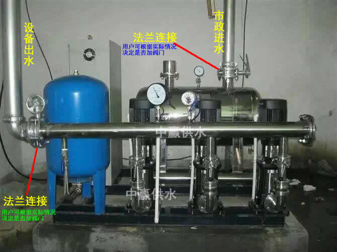 2、設備出水:恒壓設備出水法蘭對接小區管道的蘭法。